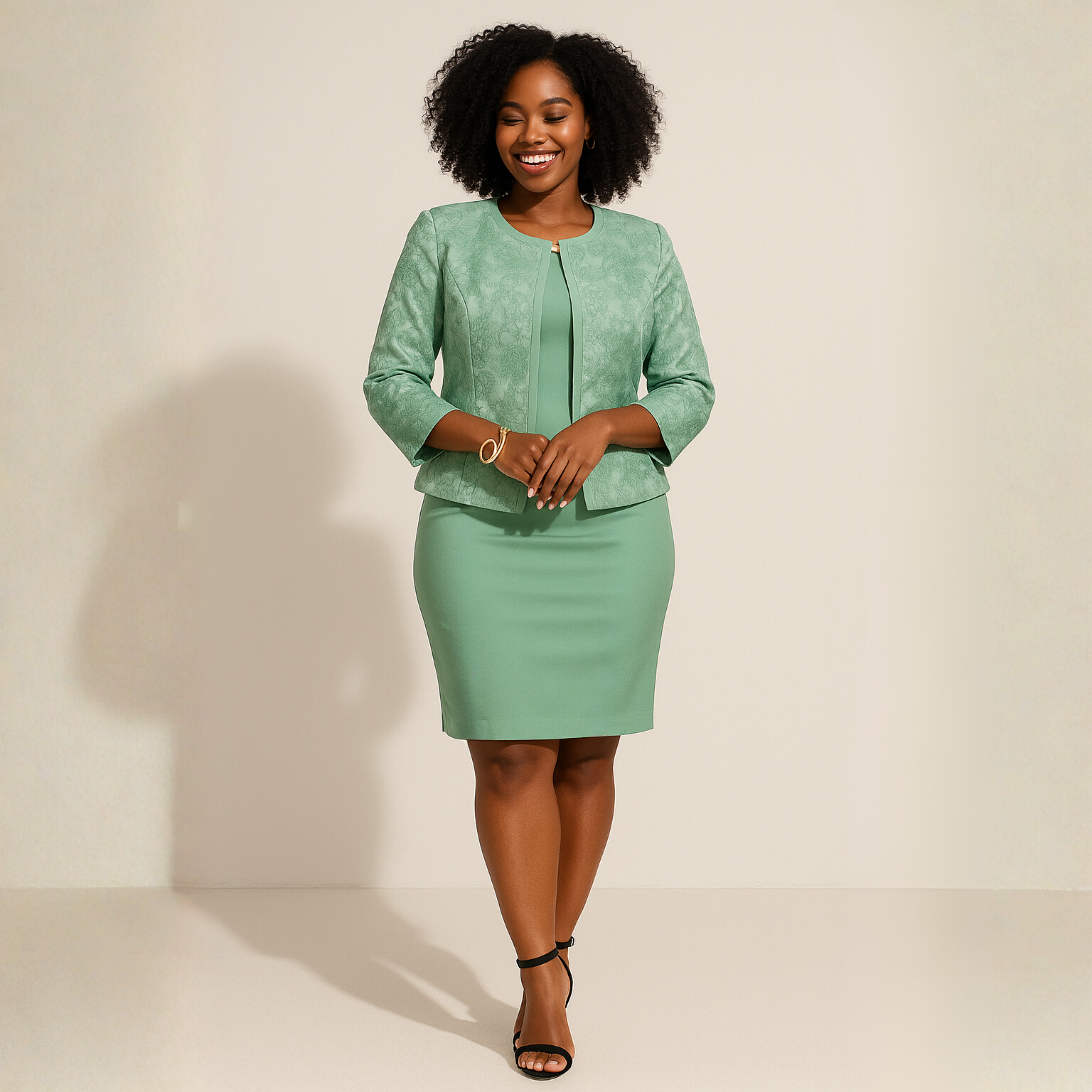 The Ayanda Grace Set is the epitome of refined sophistication — a perfectly tailored two-piece that blends modern structure with feminine charm. Named after Ayanda, a name meaning she increases in isiZulu, this ensemble celebrates growth, elegance, and confidence. With its soft green tone and subtle floral texture, it’s ideal for formal gatherings, work events, or moments that call for quiet luxury.