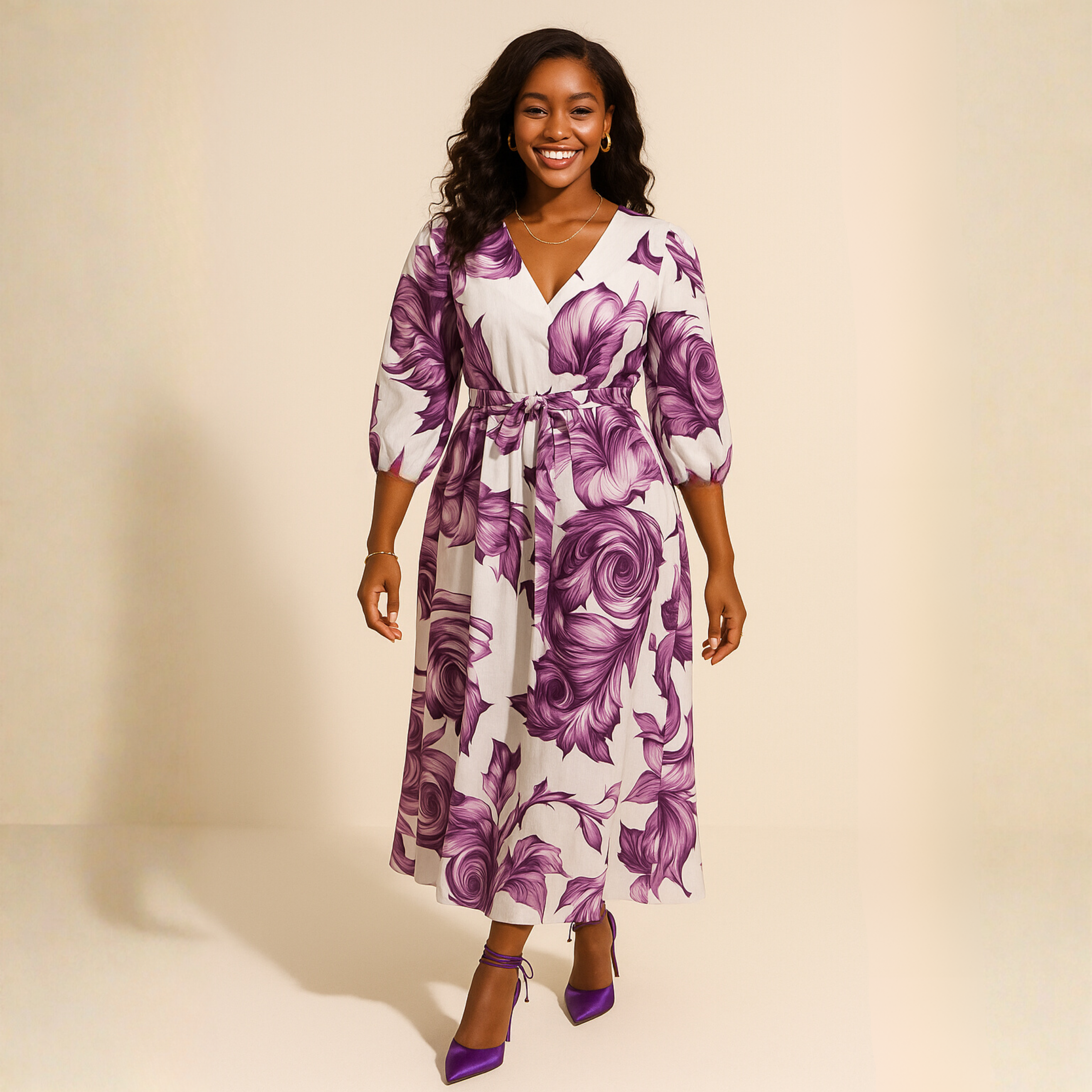 Named for the Sesotho word lerato, love, SoLerato is a romantic in every stitch. Her purple florals whisper of lavender fields and soft-spoken strength. She’s for the woman who loves deeply, walks boldly, and dresses like poetry.